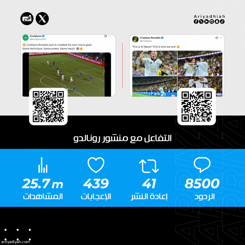 وبث رونالدو بعد نهاية المباراة منشورًا جاء فيه: «هذا هو النصر! هذا نحن!»، ليُسجل في أقل من 24 ساعة، تفاعلًا تجاوز الـ25.7 مليون مشاهدة، 439 ألف إعجاب، 41 ألف إعادة نشر، 8500 رد.