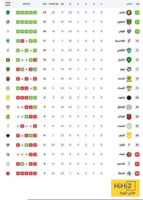 جدول ترتيب الدوري السعودي قبل انطلاق الجولة التاسعة